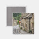 Square photo magnet of the old honey coloured cottages in Cotswold stone with slates on the roof in the small, quaint, fairy tale village of Castle Combe in the Cotswolds, England, UK with the text: 'England, Castle Combe'. A great souvenir!