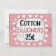 "Cotton Bloomers 25 Cents" is a fun text design with a white accent shape surrounded by white whimsical textured dots.