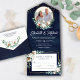 Cotton Eucalyptus Leaves Photo Navy Blue Wedding All In One Invitation