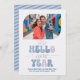 Cotton Sky Hello New Year Blue Retro Photo Holiday Card