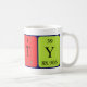 Coty spelled out as C O T Y (Carbon Oxygen Tritium Yttrium) on a mug for the scientist in you.
