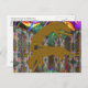 Unique Cougar Fantasy Postcard with digitally enhanced collage of original fluorescent colour art assemblage photographed in UV light including fantasy Silurian landscape, monolithic architecture, and cougar figure design created by Three Gorgons artist Ralph Jones inspired by stylised imagery of ancient art and the fossil record of the geologic era known as the Silurian Period.