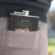 The flask itself is fine. It’s a cheap flask, obviously bought in bulk, however am prepared to overlook that. Given that it is a personalized item, I would have liked to have seen gift boxing instead of the generic packaging. Terrible printing, and/or quality. It’s a cheap, tacky vinyl. It is not cut straight and is also applied in a way that it is overhanging the bottom, causing the glue to catch on items and it will eventually roll and tear, damaging the wrap.