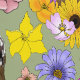 A cougar portrait with wild flowers The puma and flowers are drawn in a tattoo style in a backdrop of olive green
