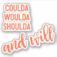 A trendy, modern typography design with the phrase "Could Would Shoulda and Will" in orange.