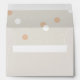Fun return address envelopes featuring a fun pop of coral and white confetti polka dots inside the liner to match the Countdown to New Year's Eve invitations.