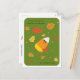 Send a sweet fall or Thanksgiving greeting with this playful fall postcard featuring a candy corn character thoughtfully admiring falling leaves. A lighthearted way to let friends and loved ones know they’re one of your blessings this season.