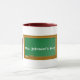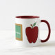 Personalise this adorable teacher's mug with your own text. Country style artwork of two red apples, on either side of a green chalk board. Teacher's name, in white text is customisable to say anything you want. Makes an adorable Teacher's gift mug for any holiday or special occasion.