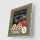 A cute kitchen wall clock with country apples, apple pie and a chalk board.