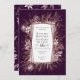 Country art floral wedding invite, on a midnight background. Inspired by the beautiful hand painted canal barges in the UK. A mix of garden or hedgerow botanicals with bold colours. A faux gold geometric frame to add a classic feel. Bold font and lettering helps to formalise the beautiful untamed nature behind.
