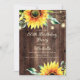 Rustic wood, yellow sunflowers with greenery, sparkling string lights, and lanterns 50th country barn-style birthday party invitation for women.