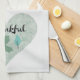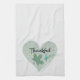 Lovely kitchen towel with a blue themed design: simple leaves, a heart, and THANKFUL in script lettering.