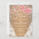 Elegant chic spring or summer wedding stylish invitation template on beige faux burlap featuring a beautiful blush pink peonies bouquet, strings of white twinkle lights, lace corners and a chic calligraphy faux gold script. ++++++++++++++ Easy to personalise with your details! +++++++++++++++ The invitation is suitable for elegant spring, summer or autumn fall rustic country / outdoor garden or backyard weddings.