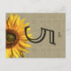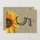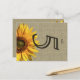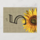 Faux look of burlap with a sunflower. Customise this sunflower postcard with your own text. Makes a great tablecard.