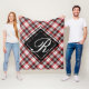 Country Cabin Red Black Plaid Tartan with Initial Fleece Blanket