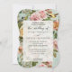 "Country Chic Pink Rose Flower Rustic Wood Weddingg Invitation Suite." Rustic Chic medium dark barn wood mixed with an elegant vintage French and English floral pattern of roses in blush, peach and butter yellow with an aqua blue wood background for a botanical, spring or summer garden theme wedding theme. Watercolor artwork was created by internationally renowned artist, Audrey Jeanne Roberts. Copyright.