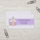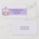 Sweet religious childcare business card done in a tiny white, lavender, and pink country cottage floral pattern. Graphics of a lavender stripe, across the middle, is decorated, with cute graphics of a church. All text, on the front and back of the card is fully customisable to suit your Daycare needs. Great for organised church daycare centres and mother's day out.