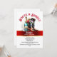 A tooled leather pair of brown leather cowgirl boots has red, purple and yellow mixed wildflowers inside it and a bottle of sparkling white next to it. They are resting on a red and faux gold horizontal band set against a white background. Editable red, black and white text templates may be personalised to suit your special celebration. This stylish dowloadable invite is ideal for a western themed, country "boots and bling" or "boots and bubbly" special event too.
