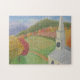 This unique puzzle features a painting by Marjorie Tietjen. One can imagine flying over the church and countryside in a dream.