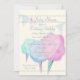 Vintage inspired country fair style baby shower invitation with colourful cotton candy and decorative pastel lace pennant flags.