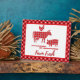 Country farmhouse tabletop sign features farm animal silhouettes (cow, chicken, pig) with red bandanna pattern fill