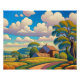 Capture the essence of rural serenity with this captivating painting. A quaint farmhouse nestles amidst lush greenery, bathed in the warm glow of the setting sun. Wispy clouds drift across a cerulean sky, while a winding path beckons exploration. This artwork is an ode to simple living and the timeless beauty of the countryside.