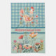 Country kitchen towel features a beautiful folk art rooster at the top bottom with flowers around his feet. Background is two shades of blue in a gingham check pattern. The bottom portion of the towel has a wildflower garden in pink, blue, orange and green botanicals. Personalise it with your name in the panel below the rooster or delete it if you don't want it personalised. Choice is yours. Feel free to message me here if you need any help customising it.