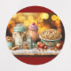 A collection of delectable treats including cookies, a milkshake, and a pie is arranged artfully on a decorated tablecloth, surrounded by apples and autumn leaves. The warm, glowing bokeh lights in the background create a cosy, festive atmosphere. Digital Art