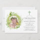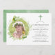 Wild woodland forest confirmation invitation featuring ferns, wildflowers and strawberries and a sage green watercolor wash background. A portrait shaped photo is recommended. A square shaped photo is recommended.