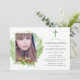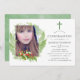Wild woodland forest confirmation invitation featuring ferns, wildflowers and strawberries and a sage green watercolor wash background. A portrait shaped photo is recommended.