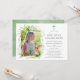 Wild woodland forest first communion invitation featuring ferns, wildflowers and strawberries and a sage green watercolor wash background. A portrait shaped photo is recommended. A portrait shaped photo is recommended.