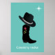 Country Hat and Boot on Teal Poster