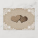 You can slip this rustic country-themed card into your wedding invitations to let out of town guests know of any hotel arrangements or group codes. Easy to personalise template. Matching items available. Rustic country wedding enclosure card featuring two burlap hearts against a vintage burlap background adorned with string lights and white floral lace.