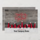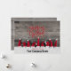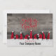 Festive corporate Holiday theme features rustic barn board background with fun row of red Santa Hats over snow border. Ornate Season's Greetings typography text above. Customise with your Company name on card front. Matching design on card back with text area message you can keep, customise or delete.