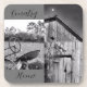 Enjoy this collage of black and white rustic images: an antique tractor, a weathered barn door, and a peak of a barn roof. Images set with a dark grey background and the words "Country" and "Home" in black script at the top left corner and the bottom left corner.