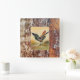 Country Kitchen Rooster Rustic Wood Farmhouse Square Wall Clock