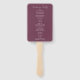 The text on the fan is presented in a clean and legible white block font, ensuring that your guests can easily read and follow along with the program. However, certain key words such as "Welcome," "Ceremony," and "Wedding Party" are beautifully showcased in a script font, adding a touch of grace and elegance to the overall design. This attention to detail creates a sense of anticipation and sets the tone for a memorable and romantic wedding celebration.