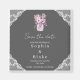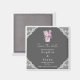 The magnet features a refined grey background that exudes understated elegance. Framing each corner are intricate white lace borders, adding a touch of vintage allure and enhancing the magnet's romantic appeal. The harmonious contrast between the soft grey hue and delicate lace creates a captivating and timeless aesthetic that will capture the hearts of your guests.