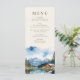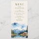 Wedding Menu with watercolor design featuring a charming rustic wedding barn nestled on the shores of a tranquil lake, framed by majestic mountains and towering pine trees. The watercolor country scene captures the serene beauty of a sunlit day, with the barn's warm wooden hues perfectly reflected in the still waters. Ideal for a rustic barn wedding, this design complements celebrations in cabin-themed settings or charming countryside venues. Its tranquil lakeside ambiance suits a lakefront wedding reception, combining the romance of a romantic mountain wedding with the relaxed charm of a woodsy outdoor wedding. Whether you’re planning a spring lakeside wedding or a fall mountain wedding, this design sets the perfect tone for a day steeped in rustic elegance and natural beauty. Browse my Country Lake Wedding collection for co-ordinating invitations, stationery, signs and wedding décor. Message me if you need me to add any additional templates.