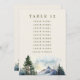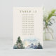 Wedding Seating Cards with editable table number and list of guest names in olive green on cream. This watercolor design depicts a serene mountain top scene with majestic pine trees in the forefront. Browse my Country Lake Wedding collection for co-ordinating invitations, stationery, signs and wedding décor. Message me if you need me to add any additional templates.