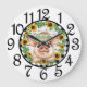 An Adorable Farmhouse County Pig Large Numbered Wall Clock Circled In Sunflowers