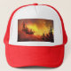 Country pine trees on a hill with a blazing sunset trucker hat