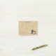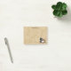 Country primitive décor adorns this cute pad of post it notes. There's a blue saltbox home, glass canning jar with cinnamon rolls, gingerbread man, stack of boxes and twigs and red pip berries". Background is a distressed, tan faux wood. Personalise with your name,