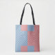 Embrace the timeless appeal of country quilts with the captivating country quilt pink and blue plaid geometric pattern adorning this tote bag. The funky design evokes images of cosy quilts, infusing your look with a sense of country comfort and nostalgia.