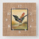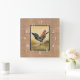 Country Rooster On Rustic Burlap Square Wall Clock