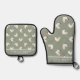 Country Roosters Pattern Sage Personalised Oven Mitt & Pot Holder Set