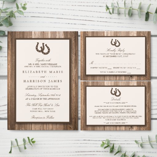 Country Rustic Horseshoe On Brown Wood WeddingDesigned by Fehmi Designs
