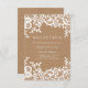 Modern Chic White Lace & Kraft Formal Wedding Enclosure Card | Chic White Lace & Kraft Wedding Stationery Suite | Elegant rustic kraft look wedding invitation with white flowers and leaves in a chic lace style. Sophisticated formal font style, with classic chic typography. Trendy wedding reception card. ***PLEASE NOTE: This card is not made of real lace or kraft cardboard paper. If you change the font or size of the font, it may alter how your stationery prints. It will print the way you see it on your monitor. I will not see your card once you order it, and Zazzle will NOT edit anything (typos, alignment, etc.).