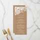 Modern Chic White Lace & Kraft Formal Wedding Menu Card | Chic White Lace & Kraft Wedding Stationery Suite | Elegant rustic kraft look wedding menu card with white flowers and leaves in a chic lace style. Sophisticated formal font style, with classic chic typography. Trendy wedding menu card. ***PLEASE NOTE: This card is not made of real lace or kraft cardboard paper. If you change the font or size of the font, it may alter how your stationery prints. It will print the way you see it on your monitor. I will not see your card once you order it, and Zazzle will NOT edit anything (typos, alignment, etc.).