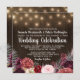 Country Rustic Marsala Peony Wedding Invitations - features a rustic barn wood background with string lights. The bottom features various elegant watercolor peony flowers, roses and floral elements in shades of grey, pink, burgundy, wine and Marsala. NOTE: This is presized at 5.25 inches by 5.25 inches. A presized 5 by 7 inches & presized 4.5 by 6.75 inches is also available. See the collection found on this page for that item and to also see the full matching product designs to complete your event.